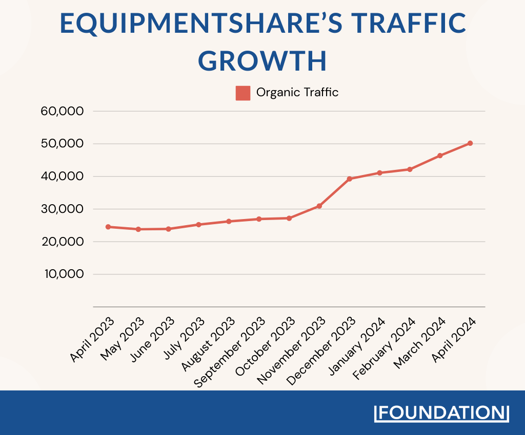 From my research, it appears that EquipmentShare identified organic traffic as a key area for growth in 2023 and 2024, and they went after it with a targeted SEO campaign. I don’t know what their goals or KPIs were for that campaign, but I can tell you I’m pretty sure they smashed them out of the park.